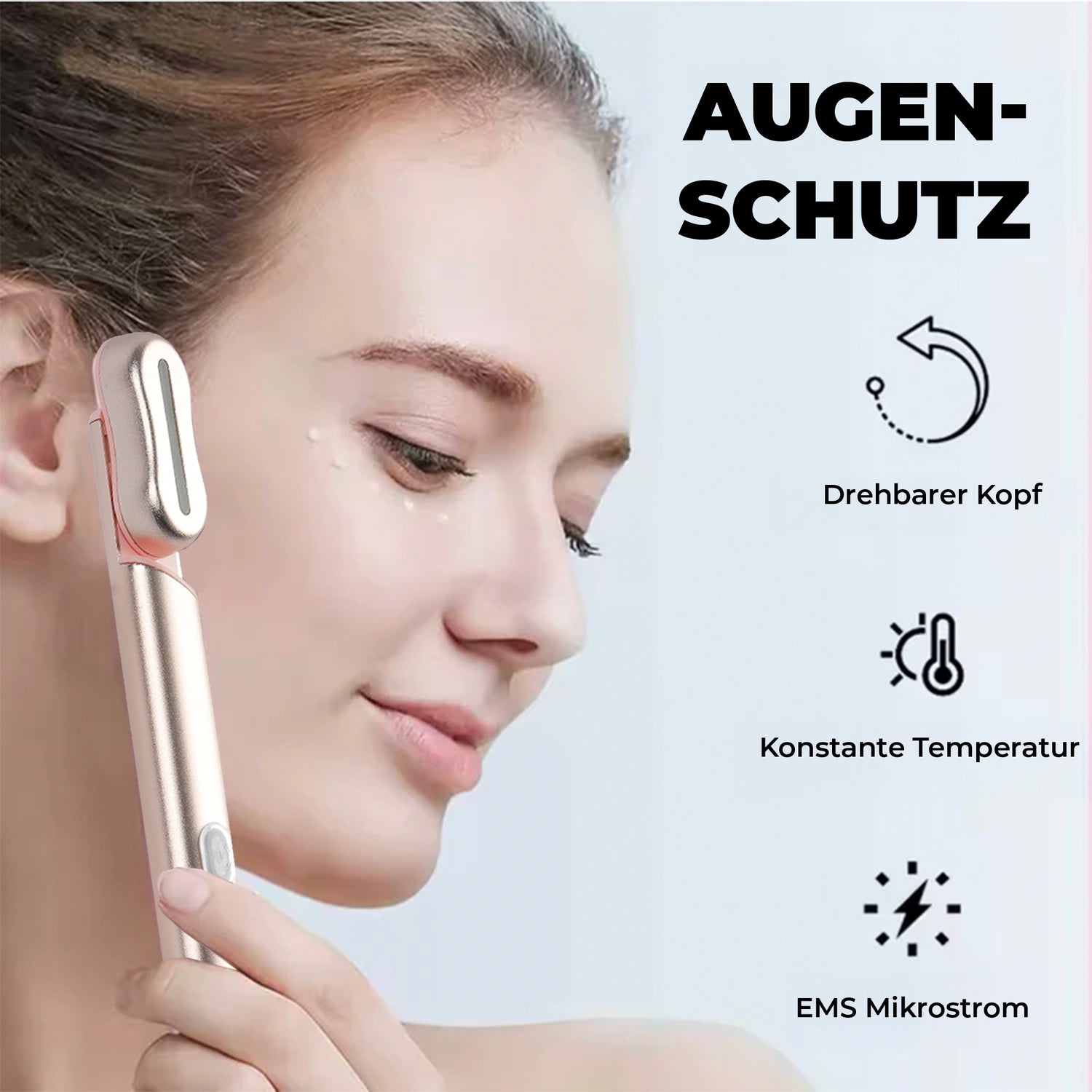 Der rotierende Kopf folgt sanft den Konturen Ihrer Augen und sorgt für eine vollständige Abdeckung und präzise Massage. Er erreicht selbst die kleinsten Bereiche mit Leichtigkeit und hilft, Schwellungen und Augenringe zu reduzieren, während er das Eindringen des Produkts verbessert.